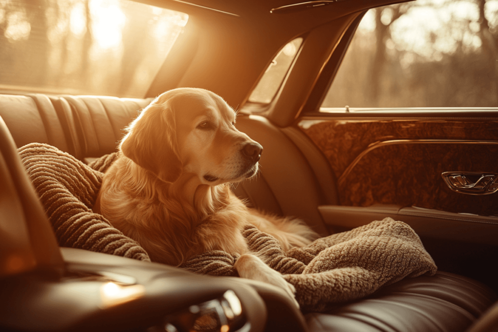 Start by letting your pet sleep with a special blanket for 3-4 nights before travel. This blanket becomes infused with their scent and familiar comfort hormones. Then, arrange this “home scent” blanket in the car exactly like their favorite sleeping spot at home.